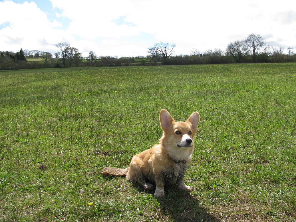 After this accident, we had to walk with Mr. Stinky Happy Corgi. Despite the fact that his family were quite annoyed by his smell, Cadwaladr looked really happy walking in the fields. Here is some evidence...